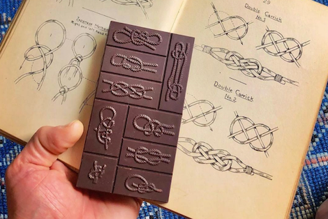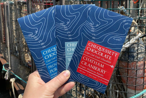 Each finished bar of Chequessett Chocolate is wrapped meticulously by hand, a process requiring time and labor. Performing this task manually is important to us as it provides additional jobs to offer community members. We wrap all our bars in a thin layer of protective plastic that ensures freshness, then we carefully enfold them in a resealable paper jacket featuring beautiful bathymetry designs. The process of stickering each bar jacket with a product description is also performed by hand.