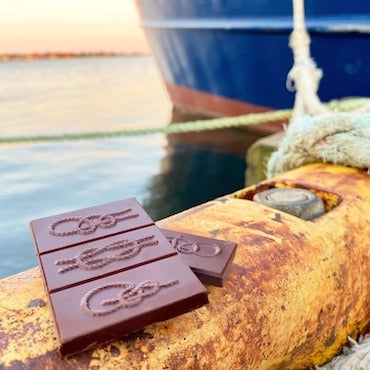 Trustworthy knots are the stock and trade of maritime life. They display natural, intricate beauty on top of their indispensable function. Delicious chocolate—like marine knots—brings people together. Enjoyed alone or with loved ones, chocolate is a deeply nostalgic flavor that brings us back to our happiest moments.
